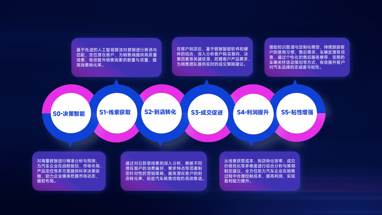 通过拓宽潜在客户来源、、、优化线索分配并提高到店转化率,,,,以增强销售效率。。。。同时,,利用线索数据不断优化分析模型,,,有效提升转化率,,,扩大营销影响力。。